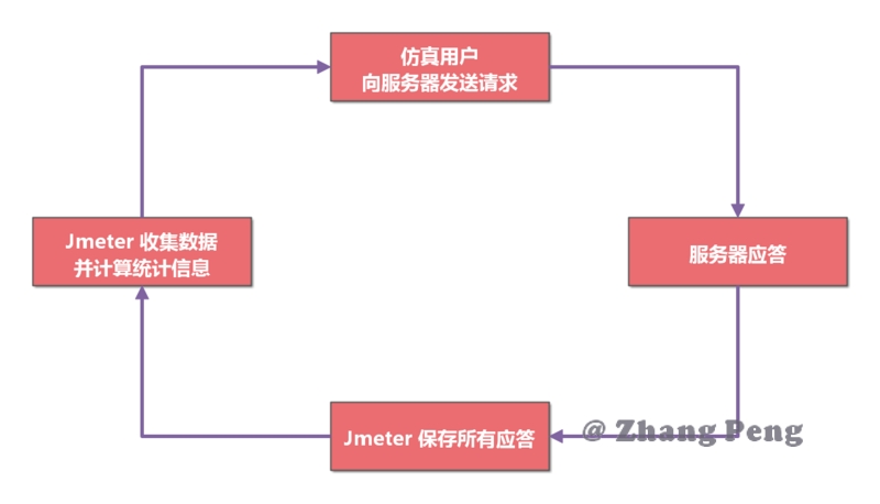 Jmeter 的工作原理是仿真用户向服务器发送请求,并收集服务器应答信息并计算统计信息。