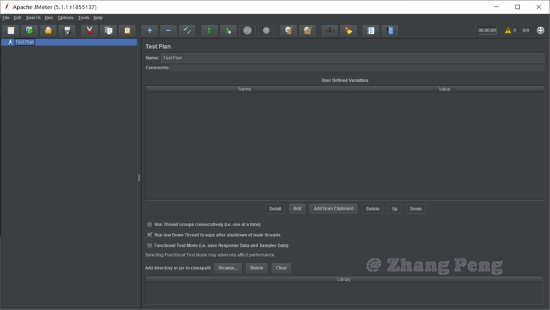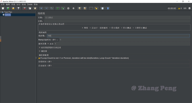 测试计划(Test Plan)- 可以将测试计划视为 JMeter 的测试脚本 。测试计划由测试元素组成,例如线程组,逻辑控制器,样本生成控制器,监听器,定时器,断言和配置元素。线程组(Thread Group)- 线程组的作用是:模拟大量用户负载的运行场景。设置线程数