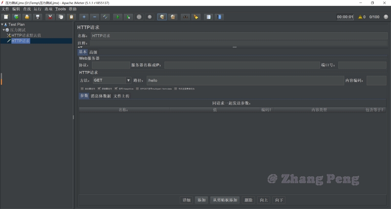 填写协议、服务器名称或 IP、端口号(如果配置了 HTTP 请求默认值可以忽略)