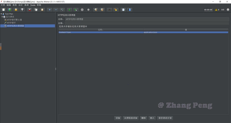 在“线程组”上右键 【添加】=>【配置元件】=>【HTTP 信息头管理器】