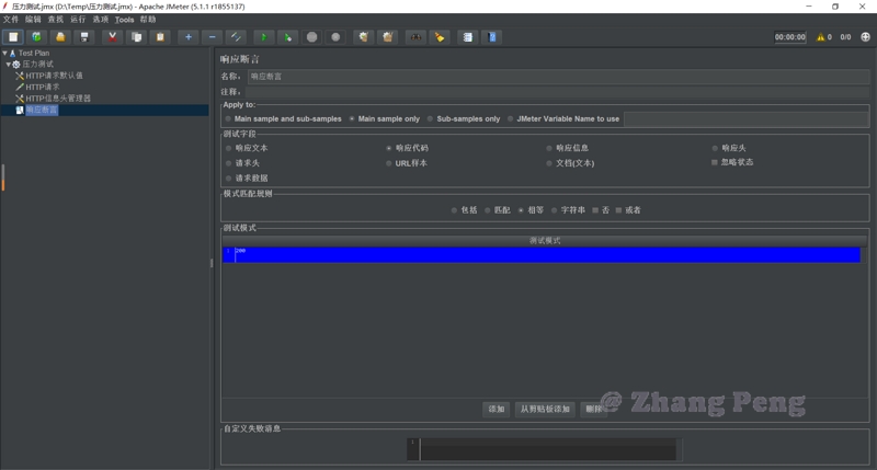 在“线程组”上右键 【添加】=>【断言】=>【 响应断言 】